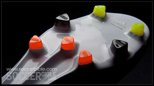 Adidas pioneered a new stud shape and configuration for the F50 adizero football boots, and as this sole-plate proved popular with the pro's it has returned for the Prime editions. The Traxion studs are shaped for maximum acceleration, and spaced to provide support during movement.