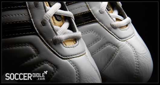 SoccerBible is your only online destination for exclusive imagery of the new White/Black/Gold adiPURE SL soccer shoes. Take a look and share your thoughts with the SoccerBible community online, on Twitter and on Facebook.