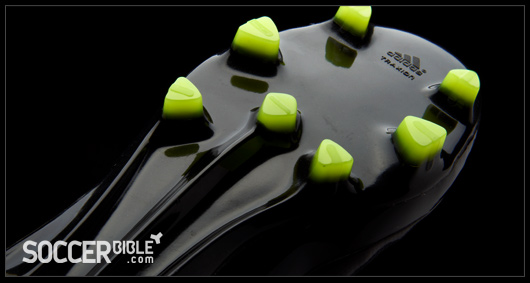 Much like the last adiZero to receive the black-out treatment, the new reflective all black synthetic upper has been complimented by contrasting F50 branding and FG studs. This time, the new black-out adiZero features both an illuminous Electricity F50 logo and adidas performance logo on the heel. The famous triangular Traxion studs bespoke to the adiZero range are also highlighted through the signature electric colour.
