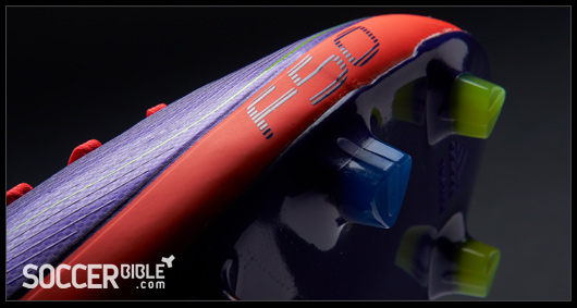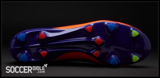 Adidas have pioneered a new stud shape and configuration for the F50 adiZero football boots, which is called out by multi-coloured studs. The Traxion studs are shaped for maximum acceleration, but more importantly strategically placed for optimal support and traction during movement.