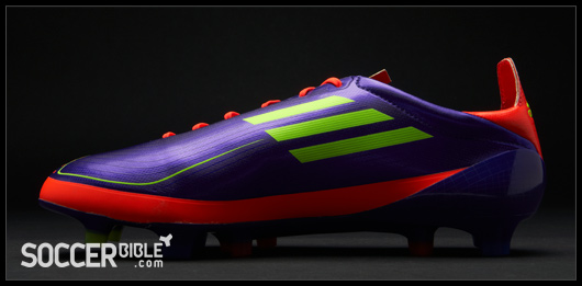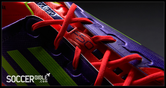 One of the innovations for the F50 adiZero Prime soccer shoes is the TPU Bottom Frame, which is the main design feature that stands the Prime apart from the standard adiZero. The band that runs around the boot and stands-out in a different colour to the rest of the boot, offers lateral stability and support, transfers forces from the out-sole to the upper and offers protection against upper abrasion.