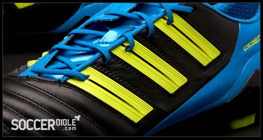 The new adiPower Predator soccer shoes continue to utilise the same Taurus calf leather first introduced in the adidas Predator X. The unique Taurus material combines a natural leather look with high tearing and high abrasion qualities to offer a high-end supreme touch performance leather.