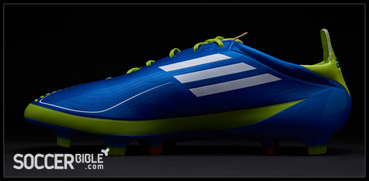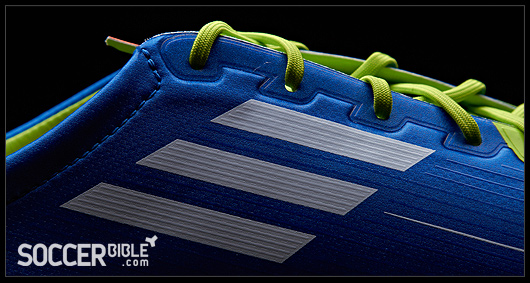 One of the innovations for the F50 adizero Prime soccer shoes is the TPU Bottom Frame, which is the main design feature that stands the Prime apart from the standard adizero. The band that runs around the boot and stands-out in a different colour to the rest of the boot, offers lateral stability and support, transfers forces from the out-sole to the upper and offers protection against upper abrasion.