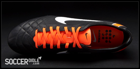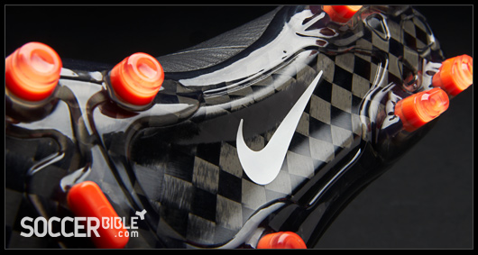 The carbon-fibre plate, first introduced in 2010, remains in the Nike Tiempo IV Elite. Usually a boot will have another layer of infrastructure made of TPU, but the carbon-fibre has enough structure alone, taking the player lower to the ground and therefore giving the boot greater response. The carbon fibre sole unit reduces the weight of the Tiempo by 40g, making it more responsive and ensuring greater performance.