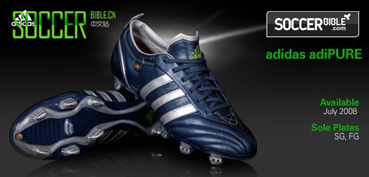 Adidas AdiPure足球鞋是Adidas传统足球鞋系列中的一部分,其源自于1970年球鞋的设计灵感,这双球鞋受到了弗兰克·兰帕德、罗宾·范·佩西以及卡卡等球星的追捧,如今新的炫目蓝/金属银/狂野绿即将问世。