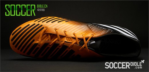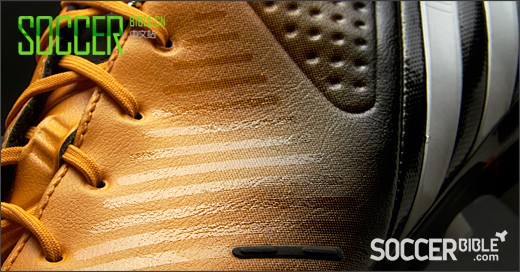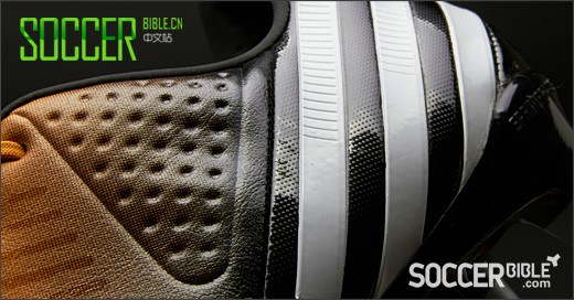 像阿迪达斯的大力宣传一样,“五个致命区域”设计能够让球员全方位掌控比赛。位于脚背内侧的"Drive"区有凸起较厚的3-D摩擦条,以帮助创造反弹的距离,打出精准长传,大力远射和诡异弧线球。