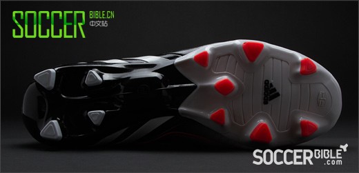 像阿迪达斯的大力宣传一样,“五个致命区域”设计能够让球员全方位掌控比赛。位于脚背内侧的"Drive"区有较厚的凸起3-D摩擦条,以帮助创造反弹的距离,打出精准长传,大力远射和诡异弧线球。
