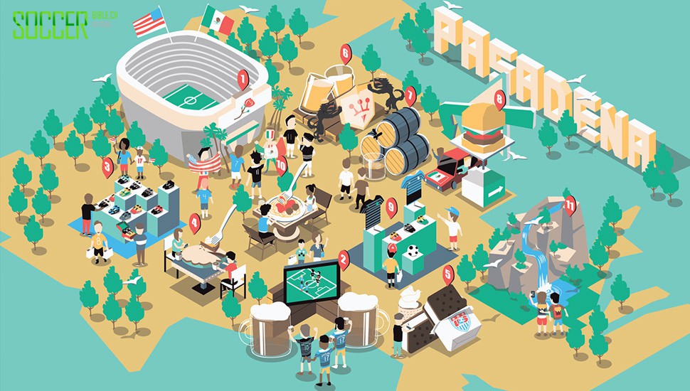 设计灵感源自帕萨迪纳的美景,从泉眼到足球小店,甚至于当地美食。这无数3D片段和平面设计的拼接,确是一种视觉的享受。我们将在玫瑰碗赛场见证美国与墨西哥对足球比赛的狂热。墨西哥最终力克劲敌,满载而归。当然,这些创作也是一种绝佳的方式,向观众展示帕萨迪纳的美景与对足球的热爱。而本次比赛也将足球激情洒满整个美利坚。