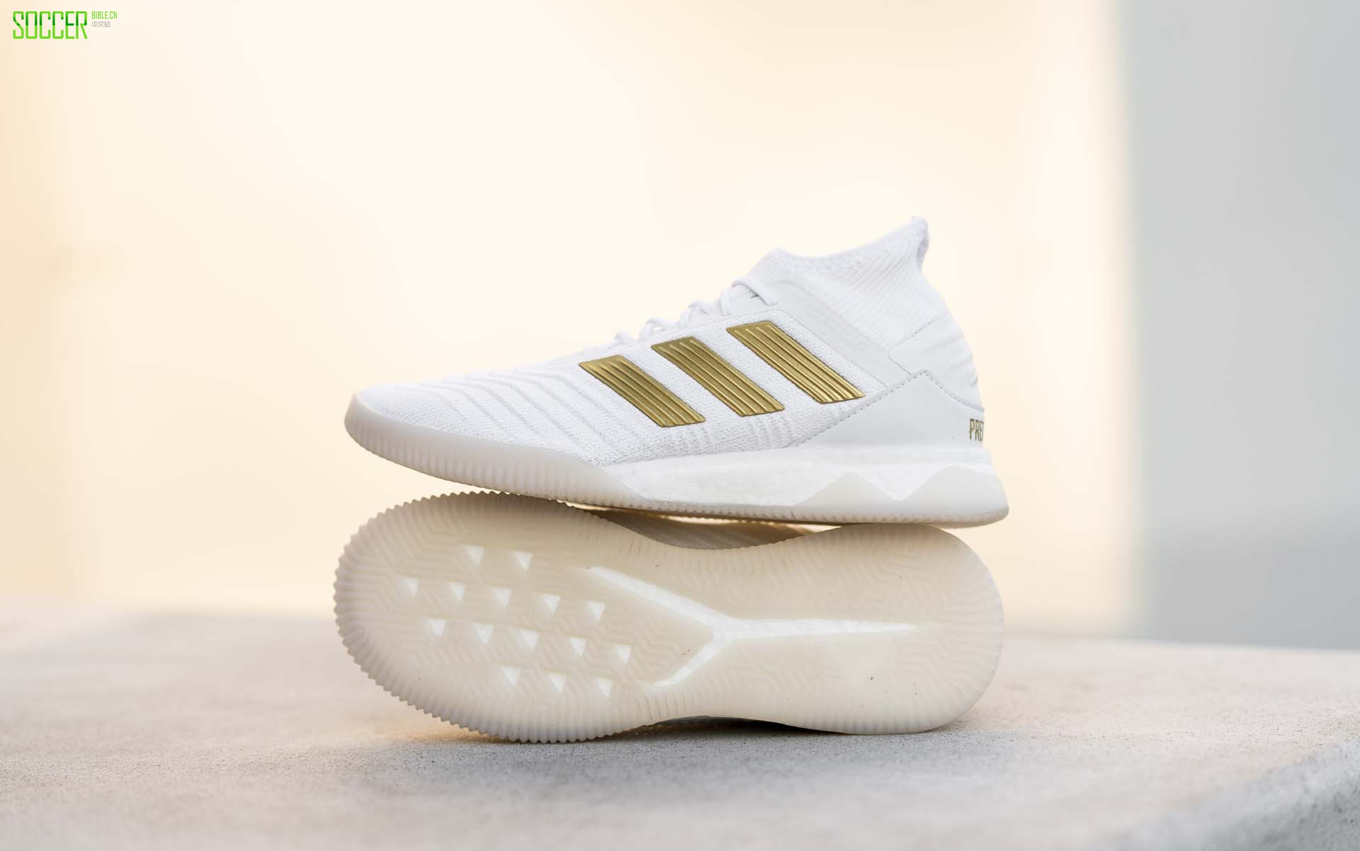 虽然猎鹰19+完全投入金色外观的怀抱,但这两款运动鞋采取了更微妙的方法。白色款实际上看起来更像是'Input Code'款COPA 19+,在三道杠上使用金色。而“猎鹰”上的唯一配色区别是后跟的哑光金。除此之外,只有一块干净的白色帆布鞋面,三道杠分外妖娆。