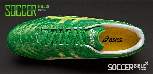 愿意在下赛季的比赛中换一些不同的口味么,你可以在制定的网店找到他们的身影。你将需要大概80英镑/130美元/100欧元来得到一双中端 绿/黄/白配色的 Asics Lethal Flash football足球鞋。