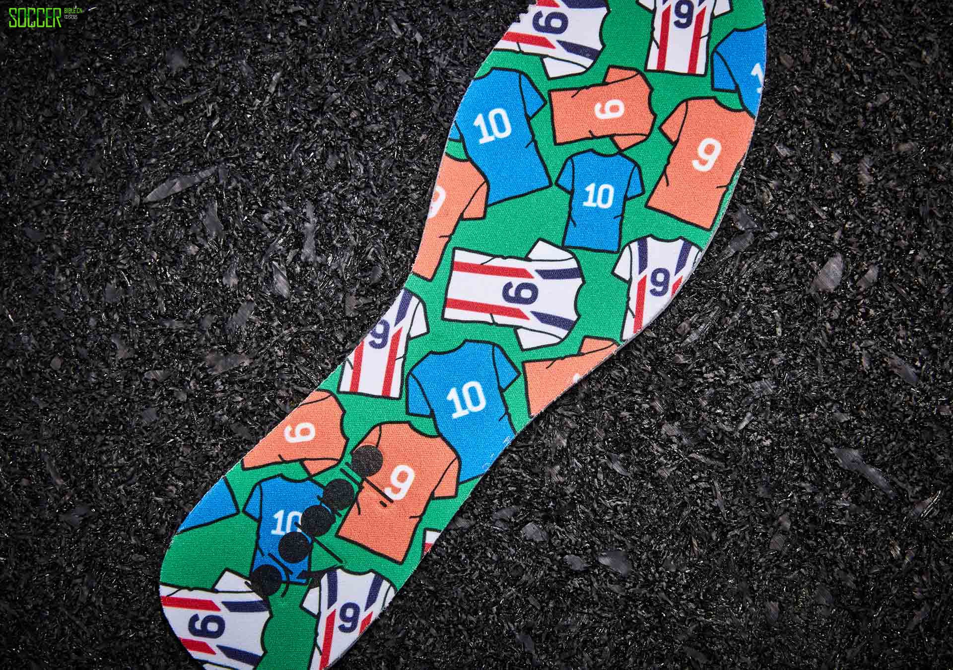 除了极致的舒适性之外,这款袋鼠皮足球鞋也能为你提供一个很好的触感,可拆卸的鞋垫表面拥有各自和传奇三位球员的球衣和号码。
