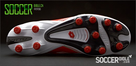 鞋底内前端的鞋脊提供弯曲弧度会增加血液循环,吸收运动疲劳所产生的乳酸。ReactiveArch和鞋底共同提供最大化的减震效果和稳定性。PuntoFlex科技为双脚提供了良好的韧性,保证了任何时候都有优秀的加速性和敏捷性。鞋底前脚掌的旋转钉已经成为过去,lotto还是选择了最传统的圆柱钉。