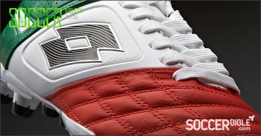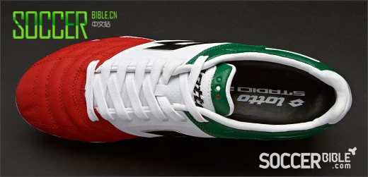 Lotto stadio Potenza 二代 是为2012年的欧洲杯特别设计的。久负盛名的Lotto stadio系列将那份难以割舍的意大利情结展现为最新的 白/绿/红 配色。著名的意大利球星巴尔扎雷利和克里斯蒂安马乔将会穿上这双战靴。