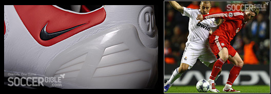 托妞那个差点获得进球的后脚跟传球,已经为皇马敲响了警钟。托妞的这个动作完全得益于T90坚固的后跟所表现出的完美性能,以及海绵垫为他的触球带来的缓冲。