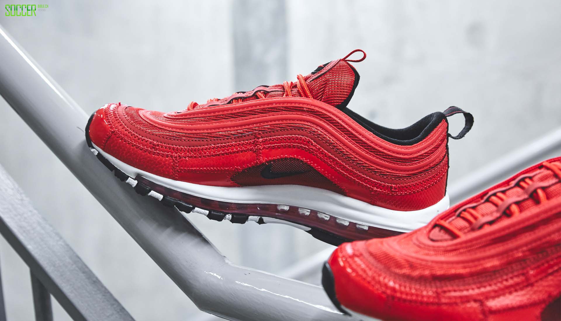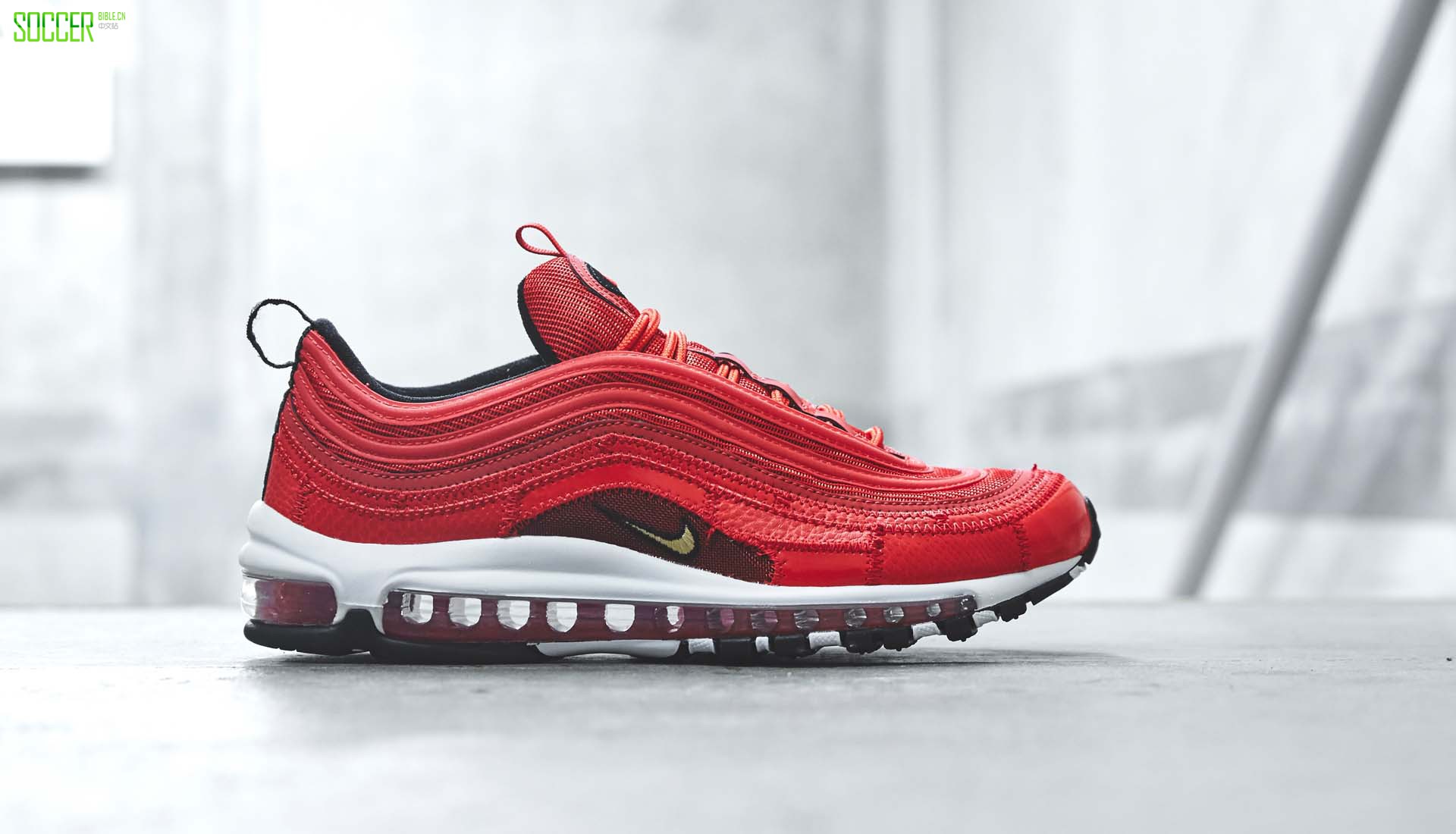 今年一月耐克就公布了“大学红”配色的设计方案,但直到复活节周末接近结束时耐克才让翘首以盼的顾客们有机会拿到这款Air Max 97 CR7。去年十月发布的上一代Air Max 97 CR7的设计灵感来自于C罗童年母亲缝补C罗在学校使用的足球鞋的情景,与上一代Air Max 97 CR7相同,最新的产品延续了前作多元化的理念。