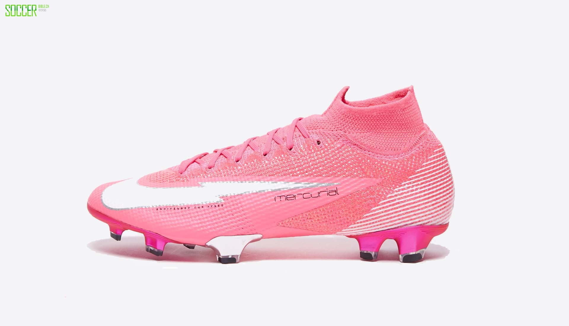 Kylian Mbappé的第二款签名版款式在八月推出,它的身上有2008年Mercurial Vapor Rosa的影子,姆巴佩在年轻时就觊觎这双战靴。它采用了与原版类似的粉色,并加入了一个银框白底的闪电Swoosh,额外的镀铬板和鞋面的"KM"标志完成了外观的更新。