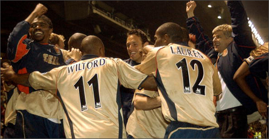 曼联 v 阿森纳 2001/2002 (0-1) – 虽然结果有点争议,温格和他的弟子们还是依靠维尔托德的唯一进球在老特拉福德战胜曼联,并同时夺得了联赛冠军,绝杀了弗格森和曼联的夺冠希望。加上之前拿到的足总杯冠军,这是一个阿森纳球迷值得自豪的赛季。