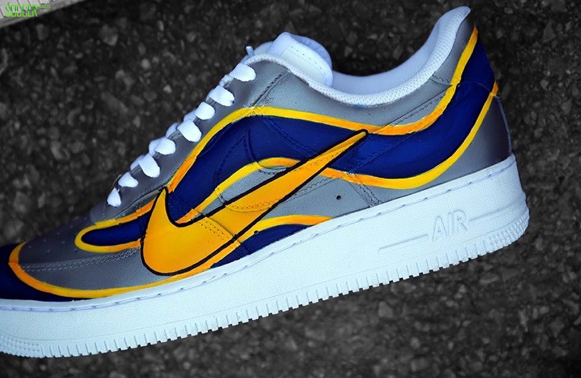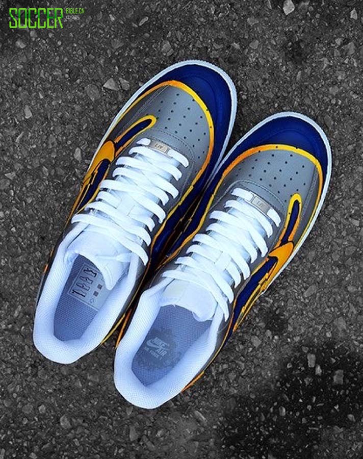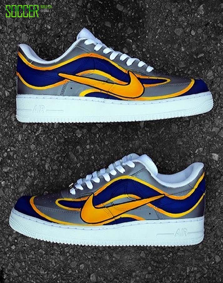 为了让创作效果更佳,创作过程全程只用画笔,连喷枪、模板都不使用。作品的最后工序同时也是点睛之笔是用全手工涂上的波浪银。就这样,经典的Nike Mercurial R9转化成了一双Air Force 1上。也许你也想拥有一双,但很不幸,全球仅此一双,哪怕你愿意再不惜血本也只能望洋兴叹。