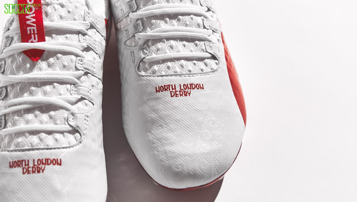 吉鲁的这双专属evoPOWER Vigor 1主要以白色和红色为主。这两种颜色也是阿森纳主场球衣的颜色,作为阿森纳的球衣赞助商,PUMA对阿森纳一直都是十分关照。吉这双球鞋的鞋身上还印有一门大炮,这也是阿森纳的象征之一,PUMA也希望通过此举来激励吉鲁能够帮助阿森纳攻城拔寨。当然了,鞋身上不可或缺的元素是“Derby Fever”的Logo。