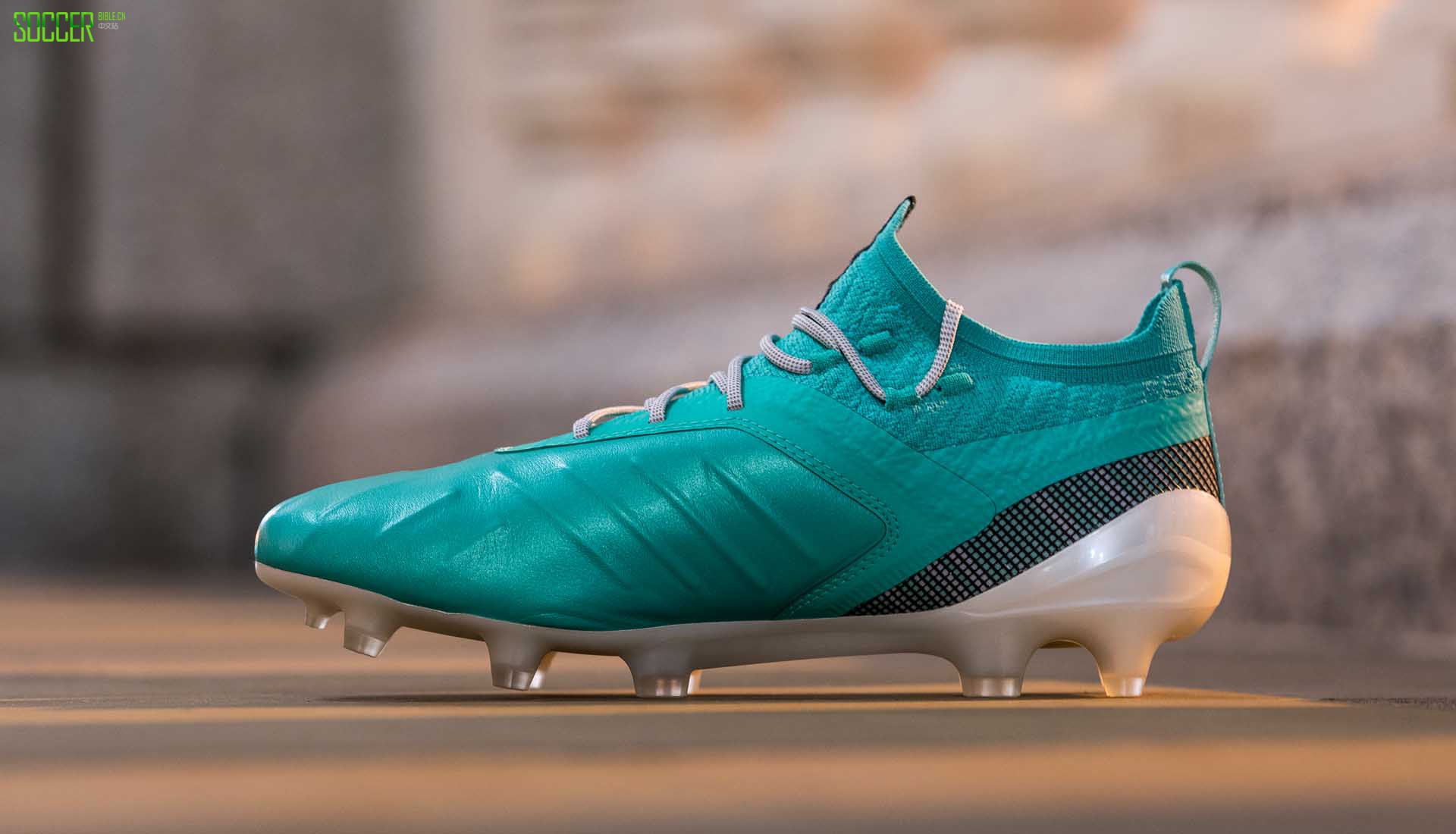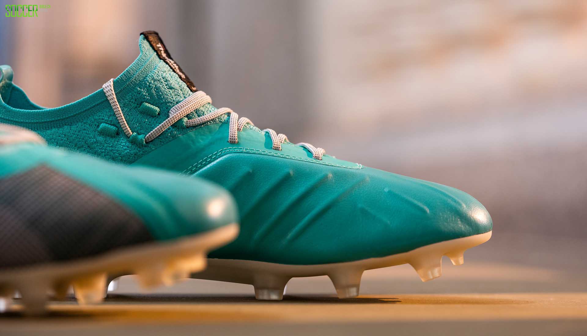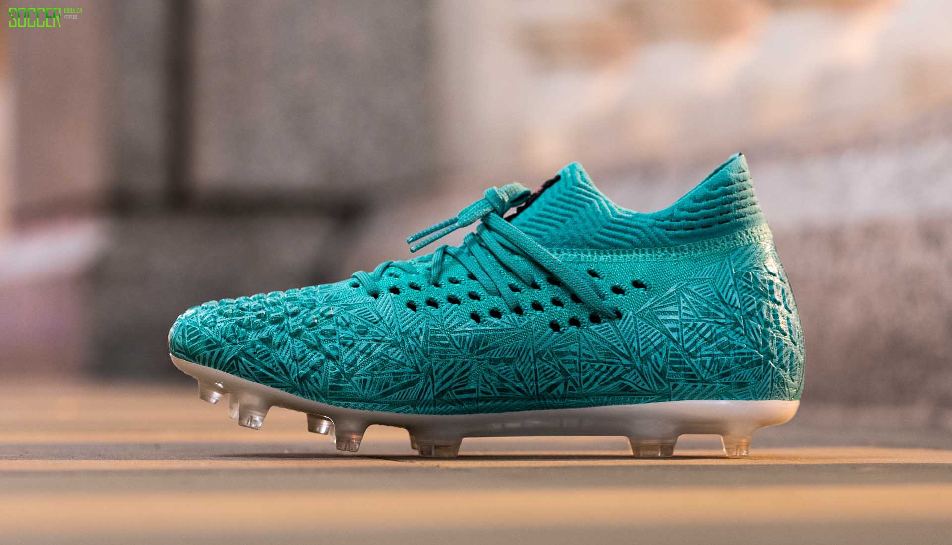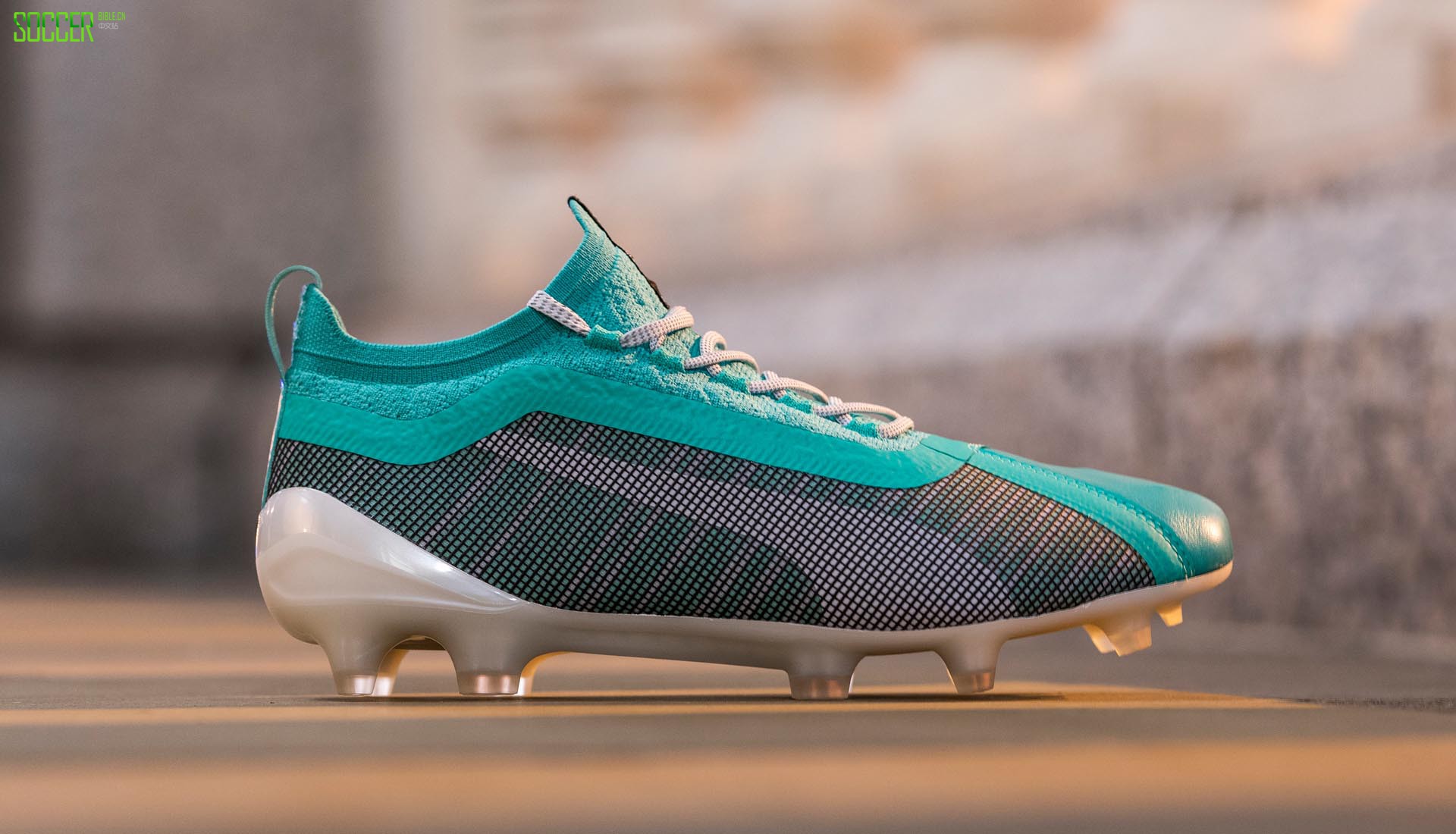 这款鞋采用了一种类似于蒂芙尼绿的冷绿色,Future4.1全身遍布了这种绿色,而ONE5.1则采用了分色设计,在球鞋外侧加入了较暗的银黑色,同时鞋带采用了反光设计。两款鞋都采用了透明的白色大底。