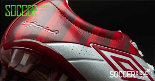 新款的Speciali Pro 3 代球鞋以圣·乔治旗主色调——红、白色为配色设计。他会以英格兰国际性的标志,亮相于2012年欧洲杯的赛场上,同样在GT Pro和Geometra Pro球鞋也推出了类似配色,这个细条纹的细节设计灵感来自于英格兰主帅奥尔夫·拉姆齐爵士在主场穿着的Umbro 夹克。