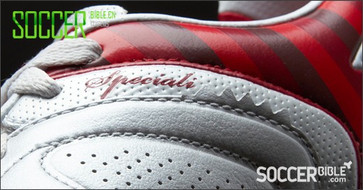 为了减轻鞋子的重量同时又保持鞋子所需的品质,Umbro Speciali 3代足球鞋采用了头层牛皮和超纤维鞋面材料组合拼缀而成。鞋的前掌、脚背部分是用高质量的头层牛皮,来确保Speciali 3 的品质和舒适,而余下的部分采用Umbro的Kanga—Touch材料来减轻鞋子的整体重量。