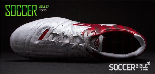 Umbro Speciali 3代足球鞋的另一个新特点是采用不对称的鞋带设计。这可以提供一片更大面积的触球区域,从而确保了接球时的稳定。极致的舒适度离不开采用内置记忆海绵的真皮鞋舌和超纤维材质的鞋口设计。