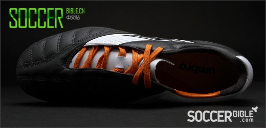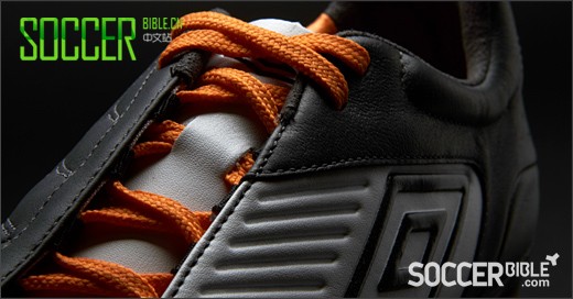 Umbro 特地用橘色鞋带来告诉我们摩登时代的品位没有消失。我们可以想象得到每一个都想用这鞋带替换鞋包中单调的黑色,白色鞋带。鞋钉也是橘色的,但是并没有过多偏离我们对于传统球鞋的认知。