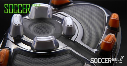 另外一个卖点在于不对称设计的“吸力”表面,你可以在脚内侧的看到这块区域。独特的材质运用更好的分配受力,使得无论是潮湿还是干燥情况下,对球的触感都有所提升。