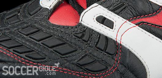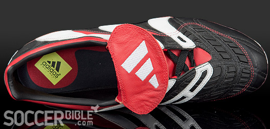 surface, and by tucking the laces away improved the striking area on the top of the boots. The new lacing system combined with redesigned rubber vamps, which were less pronounced so more boot surface area came into contact with the ball.