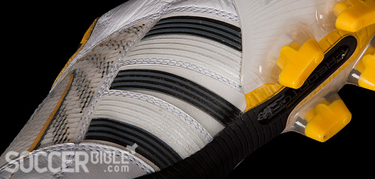 Another unique innovation of the adidas Predator X football boots is the Thermoform window on the side of the boot. This contains heat-mouldable foam that follows the shape of the foot for a snug and comfortable fit, and it also houses the new design for the adi three stripes, which has been a real talking point for these new Predator football boots.