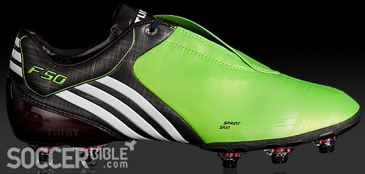 The two standout features of the new adidas F50i football boots upper, is the print application on the instep of the boot and the new lace-cover. The print application is positioned to assist ball control by increasing friction, and the redesigned lace-cover increases the kicking area whilst still allowing access to the laces.