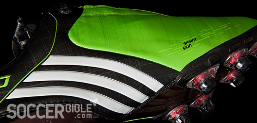The Macaw colourway makes these new F50i's a really eye-catching boot, with the green colour covering the entire forefoot area of the synthetic leather upper. The upper is made from an innovative material developed by adidas called SprintSkin. The material is single-skin so it gives a great touch and feel for the ball whlst reducing weight, and is also durable to cope with the rigours of the modern game.