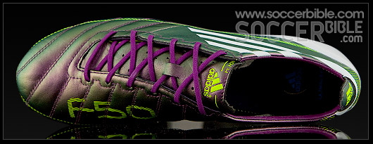 This Chameleon Purple/Electricity Green colourway is one of three launch colours, of which this series of boots will be exclusively worn on pitch by F50 ambassador and the World's greatest player, Lionel Messi.