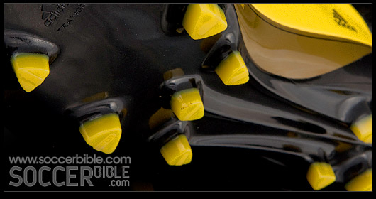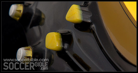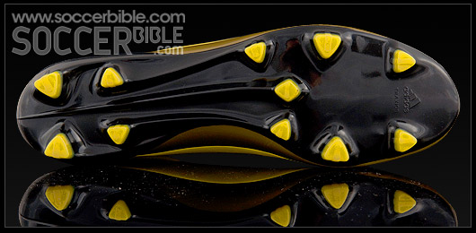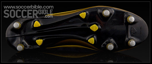 The FG plate features new triangular Traxion studs, placed at strategic positions across the sole unit which aid pressure distribution and are designed to give improved directional grip. The SG plate takes the form of a mixed sole version which substitutes 6 removeable aluminium studs at the toe and heel. Both sole plates offer stability through a sleeker midfoot area which also goes to creating a snug fit.