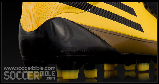 Bringing your attention to the heel of the boot, and you'll notice a stable external heel counter which intends to lock your heel in as you sprint to evade the opposition. Attached to the heel counter is a new outsole construction, dubbed Sprint Frame, which adidas claim brings "stability through geometry" (yeh, us neither).