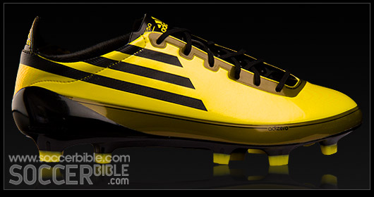 The F50 adiZero adopts an asymmetric parrallel lacing system which moves off-centre to create a greater, cleaner kicking surface. Also introduced is a new "Taperlace" system, intended to be much thinner and flatter to reduce any unncessary material between the foot and the ball. The top of the lace area has also been made wider, so your tied laces won't get in the way as much!