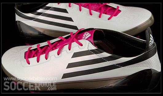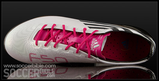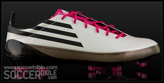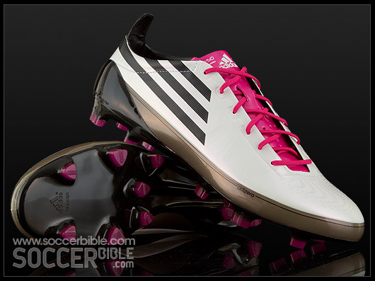 Unveiling the very eye-catching new adidas F50 adiZero football boots, in this great looking White/Black/Radiant Pink colourway. Check out the full images, exclusively at the SoccerBible...