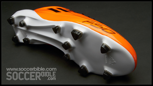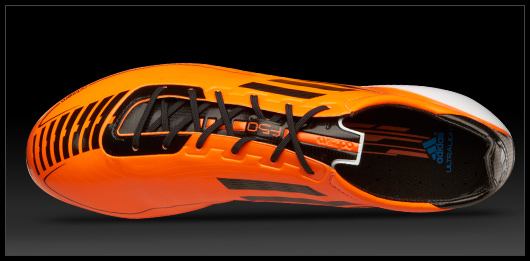 A common criticism of adidas football boots is that they are a too narrow fit, and for this reason the new adidas adizero soccer shoe retains the last from the previous adizero, which is unique to the F50 series and differs from the Predator and adiPure lasts as it has a wider and flatter footbed. This also means the studs can be positioned closer to the outside of the sole, giving greater stability, and improving movement, traction and pressure distribution.