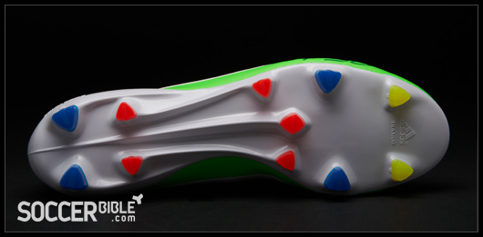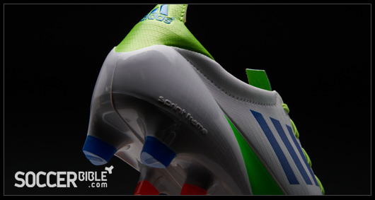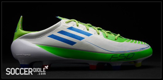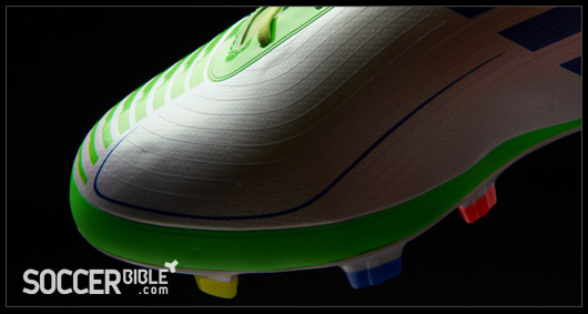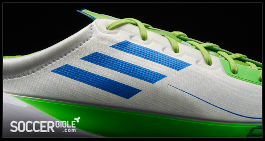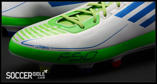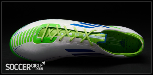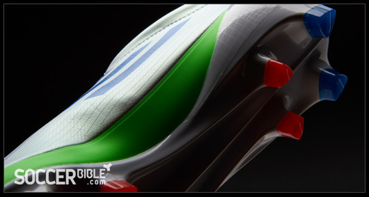 One of the innovations for the F50 adiZero Prime soccer shoes is the TPU Bottom Frame, which is the main design feature that stands the Prime apart from the standard adiZero. The band that runs around the boot and stands-out in a different colour to the rest of the boot, offers lateral stability and support, transfers forces from the out-sole to the upper and offers protection against upper abrasion.
