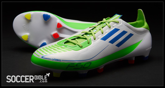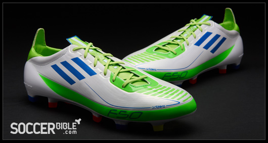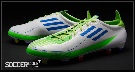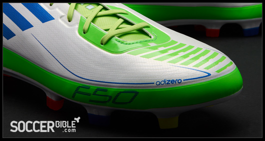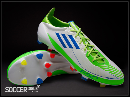 The new White/Blue/Slime F50 adiZero Prime will be one of three adiZero's available in this colour-way that is also set to include a standard adiZero and a leather option. SoccerBible is your only stop for exclusive images of the new White/Blue/Slime adiZero Prime soccer shoes.