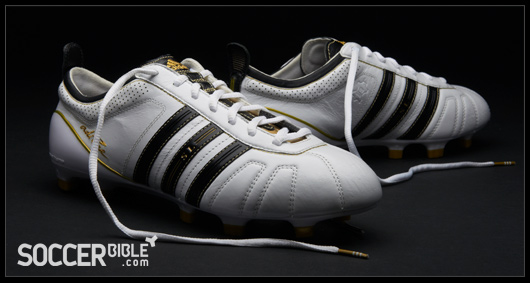SoccerBible is your only online destination for exclusive imagery of the new White/Black/Gold adiPURE SL soccer shoes. Take a look and share your thoughts with the SoccerBible community online, on Twitter and on Facebook.