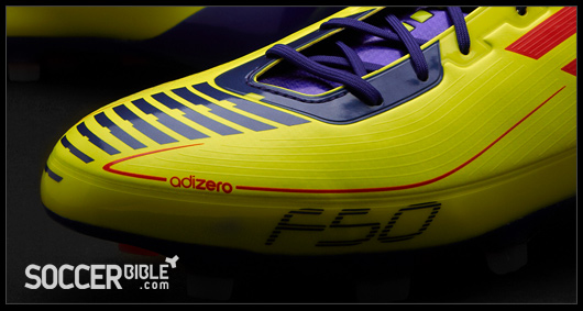 The electric yellow colour used on the new adiZero football boots is reminiscent of the Predator X Electricity that created headlines across the boot world. With the new Sprint Skin upper used on the worlds lightest soccer shoes, the Electricity/Purple adiZero football boots take that famous electric feel to a new level.