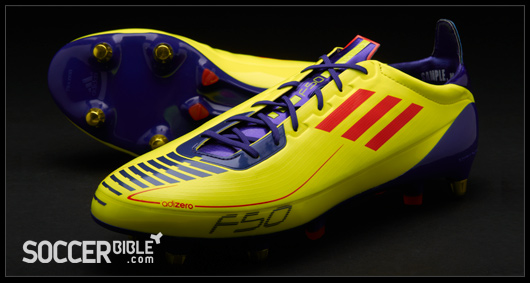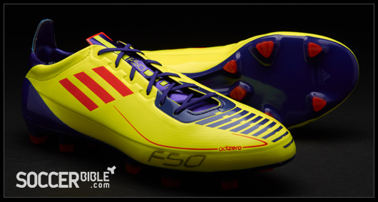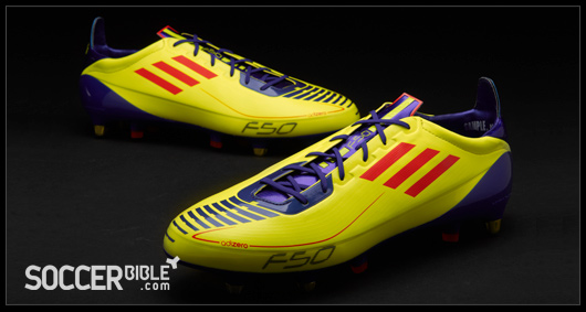 The new Electricity/Purple adidas F50 leather adiZero football boots will retail worldwide for around £140 GBP/ $200 USD / €165 EURO. You will be able to pick up a pair of the new adiZero football boots from early June when they are set for a global release.