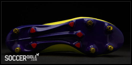 The FG plate features the triangular Traxion studs bespoke to the adizero range, placed at strategic positions across the sole unit that aids pressure distribution and are designed to give improved directional grip. The SG plate takes the form of a mixed sole version, which substitutes 6 removable aluminium studs at the toe and heel. Both sole plates offer stability through a sleeker midfoot area that also goes to creating a snug fit.
