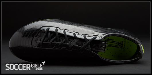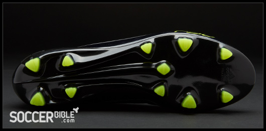 Much like the last adiZero to receive the black-out treatment, the new reflective all black synthetic upper has been complimented by contrasting F50 branding and FG studs. This time, the new black-out adiZero features both an illuminous Electricity F50 logo and adidas performance logo on the heel. The famous triangular Traxion studs bespoke to the adiZero range are also highlighted through the signature electric colour.