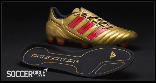 The new Gold/Red/Black adiPower DB Predator football boots are expected to be available from mid July and will retail worldwide for around £155 GBP / $230 USD / €185 EURO.