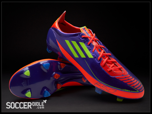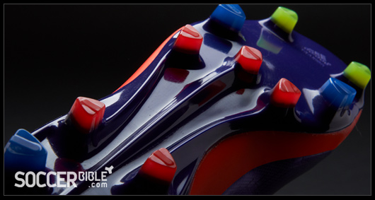 Adidas have pioneered a new stud shape and configuration for the F50 adiZero football boots, which is called out by multi-coloured studs. The Traxion studs are shaped for maximum acceleration, but more importantly strategically placed for optimal support and traction during movement.