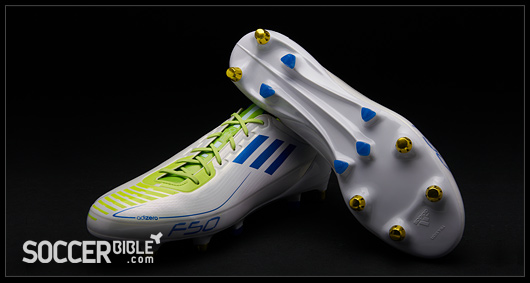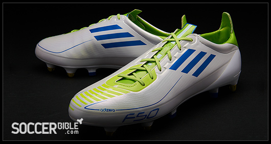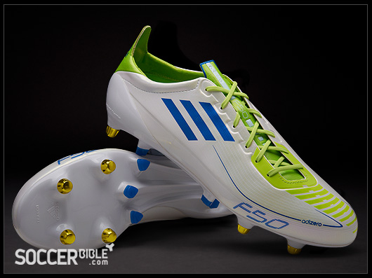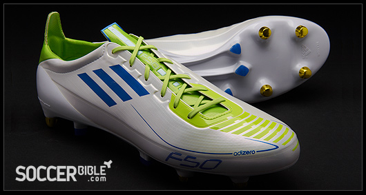 The new football boots keep coming here at SoccerBible, as adidas roll out their new colourways across the adizero range. Next up is the white/blue/slime adidas F50 adiZero football boots featuring a synthetic upper, and for these versions we thought we'd show you the soft-ground's...