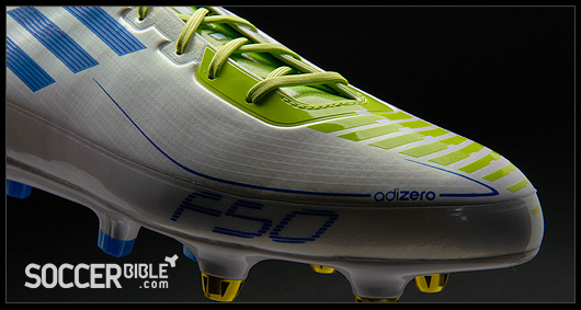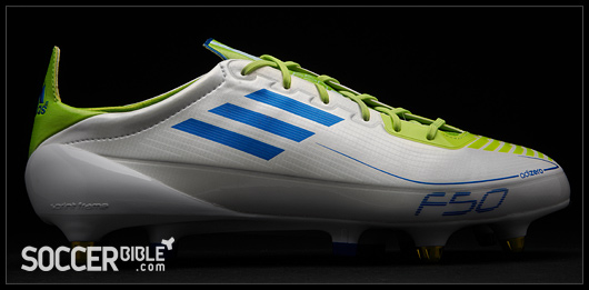 The new White/Blue/Slime adidas F50 adiZero football boots will retail worldwide for around £140 GBP/ $200 USD / €170 EURO. They will be available to pre-order this week prior to their official release on June 1st.